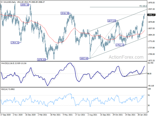 周二,现货黄金最高一度触及1914.03美元/盎司,创下2021年6月以来最高水平。俄乌局势恶化再加上不断升温的通胀,强化市场对避险黄金的需求。