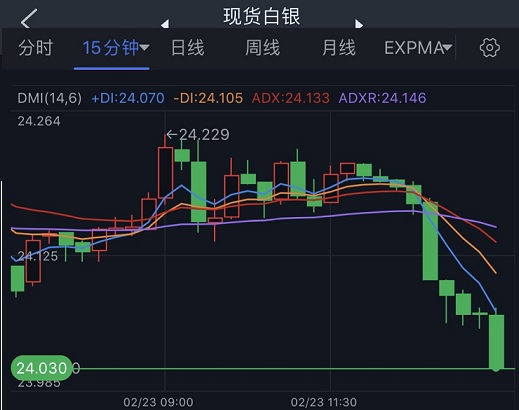 24K99讯 周三(2月23日)亚市尾盘,现货白银短线急跌,银价正逼近24.00美元/盎司。知名财经资讯网站Economies.com周三最新撰文,对日内白银走势进行前瞻分析。