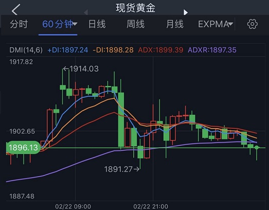 金价已经自周二高点明显回落大,当日现货黄金最高一度触及1914.03美元/盎司,创下2021年6月以来最高水平。