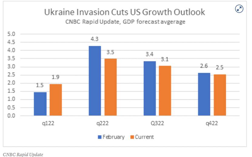 在初步评估乌克兰战争对经济的影响时,预测人士说,美国经济增长将放缓,通胀将上升,欧洲经济将接近衰退,俄罗斯将陷入两位数的深度衰退。