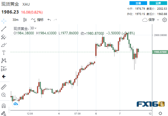 日内,现货黄金价格一度达到自2020年8月19日以来的最高水平2002.53美元,但美市开盘前大幅回落至1960.88美元低点,现回升至1780美元略下方交投。