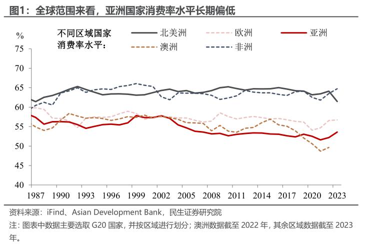 当前我国经济正迎来迈向中等发达国家的关键一跃,“十五五” 对于“居民消费率明显提高”战略目标的表述可谓恰逢其时。然而纵观全球发展经验,欧美模式具有不同的储蓄文化、家庭观念和社会保障体系,相较之下,与我们文化同源、发展路径相似的亚洲经济体,更值得深入探究。故此,与其远眺欧美寻找“灵丹妙药”,不如近观亚洲主要经济体的实践经验。