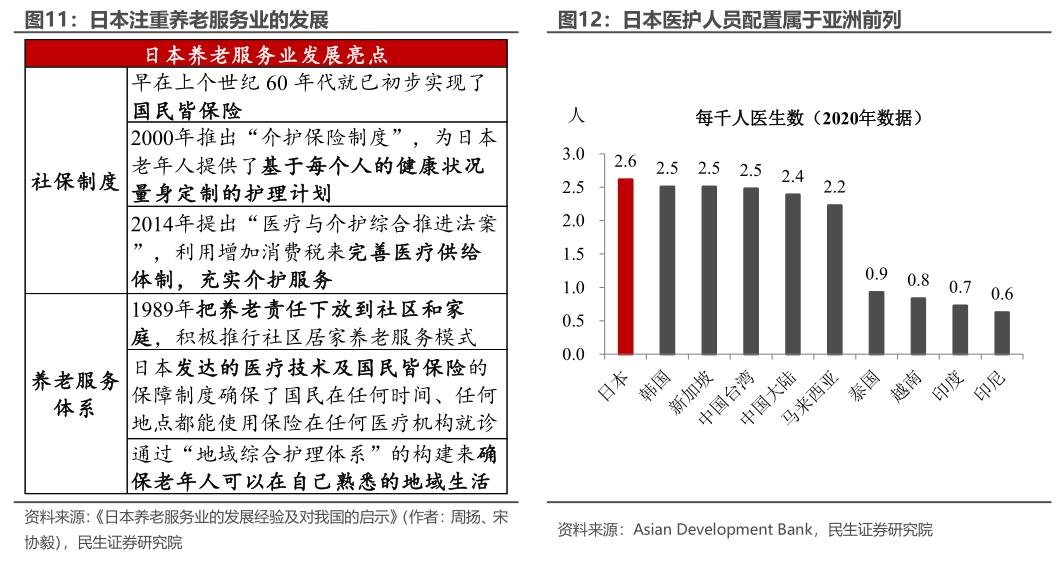 与之相辅相成的是日本发达的医疗体系。日本医护人员的高配置水平,构筑了“老有颐养、病有良医”的社会生态,有效消解了民众的后顾之忧,让消费潜力得以充分释放,形成了服务供给与消费升级相互促进的良性循环。