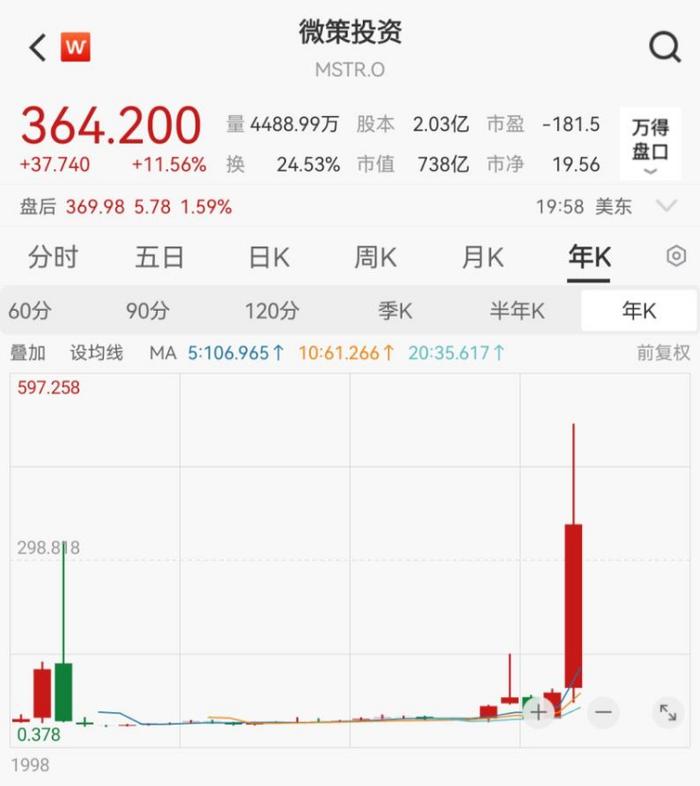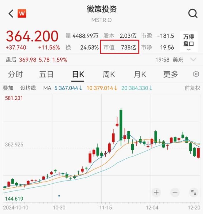 目前,比特币目前交易价格约为95000美元,微策略持有币值约402.47亿美元;12月20日,微策略市值为738亿美元。
