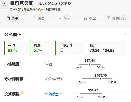分析师认为,星巴克当前仍有约15美元的上升空间。
