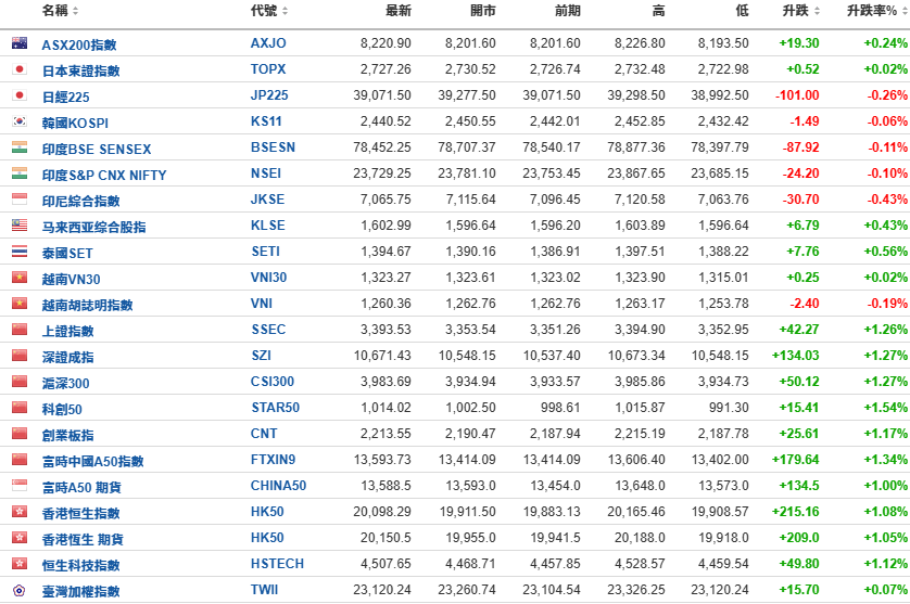英伟达(NVIDIA)(NASDAQ:NVDA)升0.4,亚马逊(NASDAQ:AMZN)升0.1%,谷歌母公司Alphabet(NASDAQ:GOOG)升0.3%,