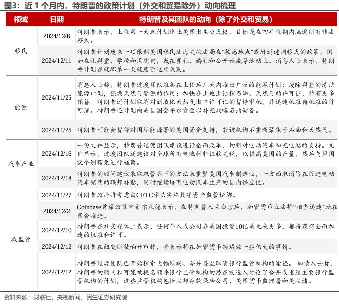 中国方面,特朗普提出对华加征10%关税,并在12月22日对TikTok放宽态度。相比之下,特朗普对中国的“针对性”并不突出。