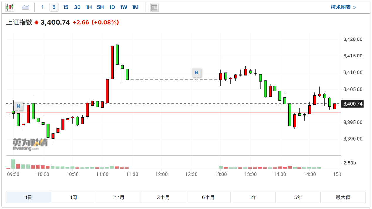 截至收盘,上证指数收涨0.06%,报3400.14点,深证成份指数收跌0.13%,报10659.98点,创业板指数(价格)收跌0.22%,报2204.9点,中国A50期货指数截稿前涨0.03%,报13593点。