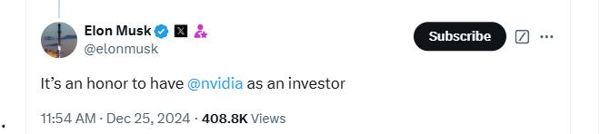 这一次,豪华投资阵容再升级,马斯克拉来了英伟达公司 (NASDAQ:NVDA)、美国超微公司AMD (NASDAQ:AMD)等巨头入局。
