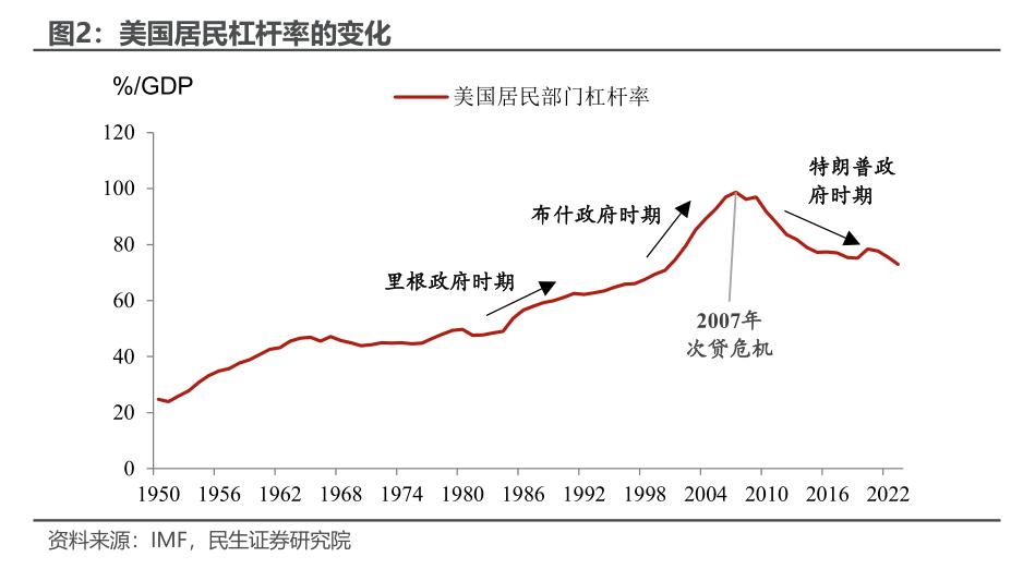 在居民还能加杠杆的情况下,地产也是刺激的重要抓手,而当居民无法加杠杆的情况下,会更加注重通过去监管和减税来引导制造业投资,也会注意通过减税和民生支出帮助居民部门降低杠杆。