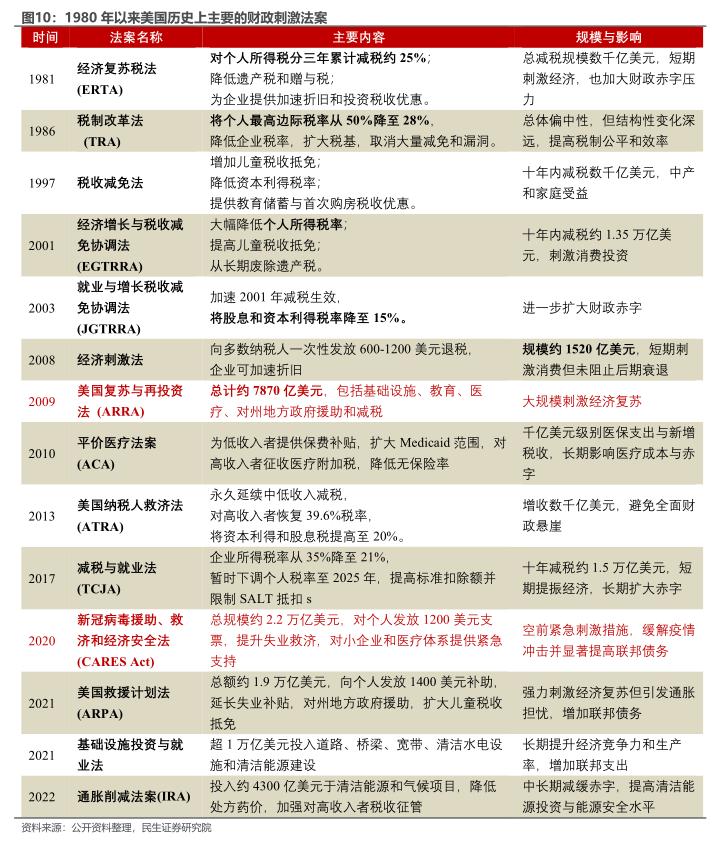 :里根政府的赤字政策主要来源于减税,包括大幅降低个人所得税、遗产赠与税,为企业提供投资优惠等。此外,1982年里根签署《加恩圣杰曼法案》, 放宽了对储贷机构(S&Ls)的监管限制,允许它们进行更多的投资活动,包括商业房地产贷款和某些类型的商业贷款。