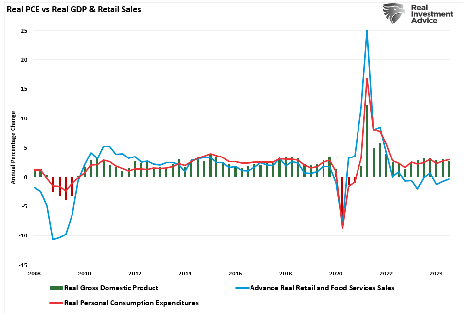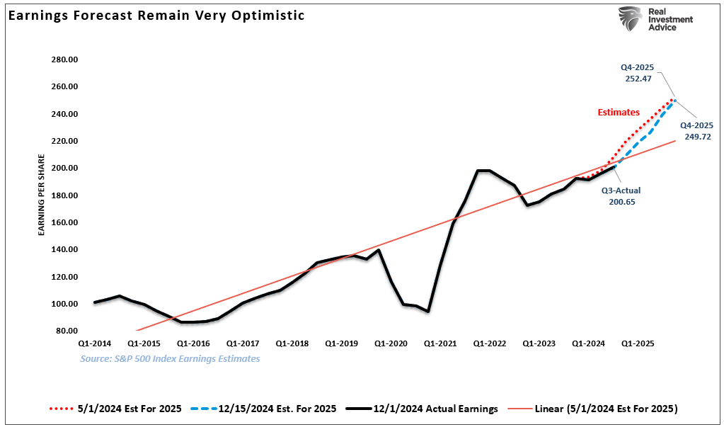 虽然人们对2025年的经济和盈利增长持乐观态度,但这些预测有风险,特别是在考虑到当前经济数据的相对强度和趋势时,尤为明显。