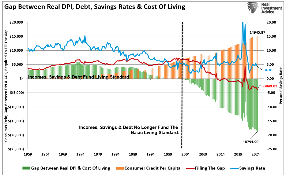 下图通过展示生活成本与收入和储蓄之间的“差额”,揭示了普通美国人的困境。