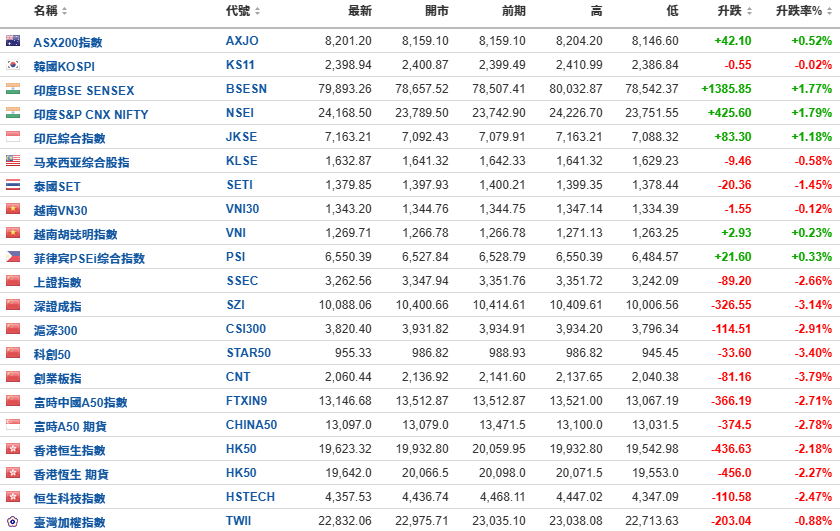 亚太股市升跌互现,中国股市大幅下挫。
