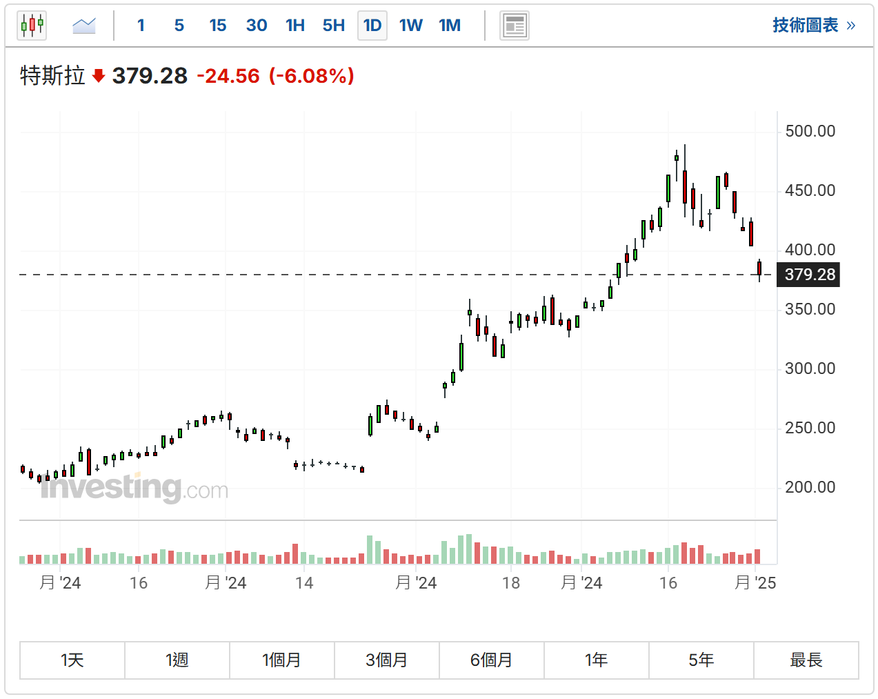 周五(3日),美股盘前,特斯拉 (NASDAQ:TSLA)升超1%,此前,特斯拉连续5个交易日下跌,自去年12月高点488.54美元以来,已回吐28.8%的升幅。