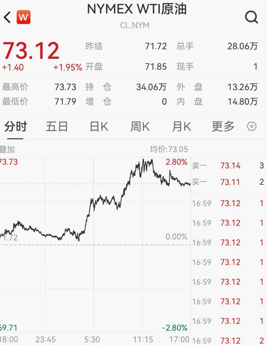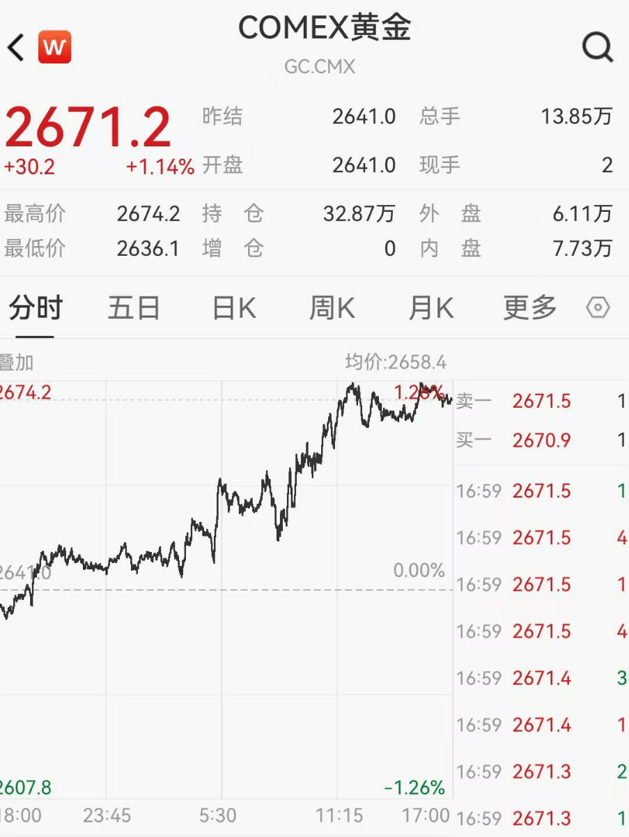 此外,黄金和原油均大涨。NYMEX WTI原油上涨1.95%,73.12美元/桶。COMEX黄金上涨1.14%,报2671.2美元/盎司。