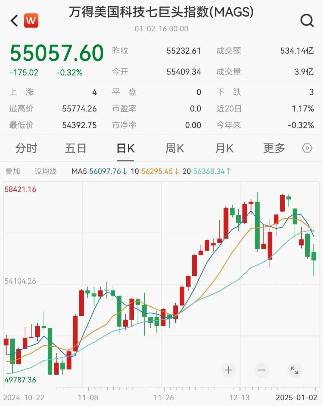 万得美国科技七巨头指数下跌0.3%。