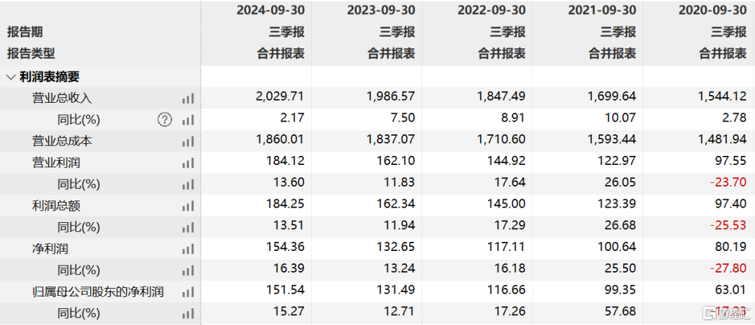 2024年前三季度,公司归母净利润为151.5亿元(绝对值低于美的集团的317亿元,格力电器的219.6亿元),同比增长15.44%。并且,过去几年均维持了双位数增长。
