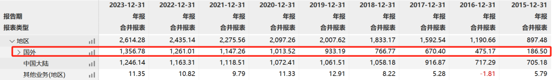 (公司营收地区来源情况,wind)