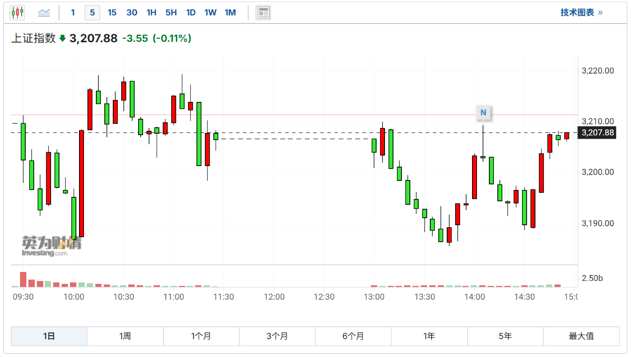 截至收盘,上证指数收跌0.14%,报3206.92点,深证成份指数收跌0.12%,报9885.65点,创业板指数(价格)收跌0.09%,报2014.19点,中国A50期货指数截稿前跌0.58%,报12938点。
