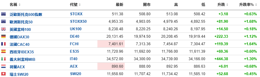 欧洲股市集体上升。