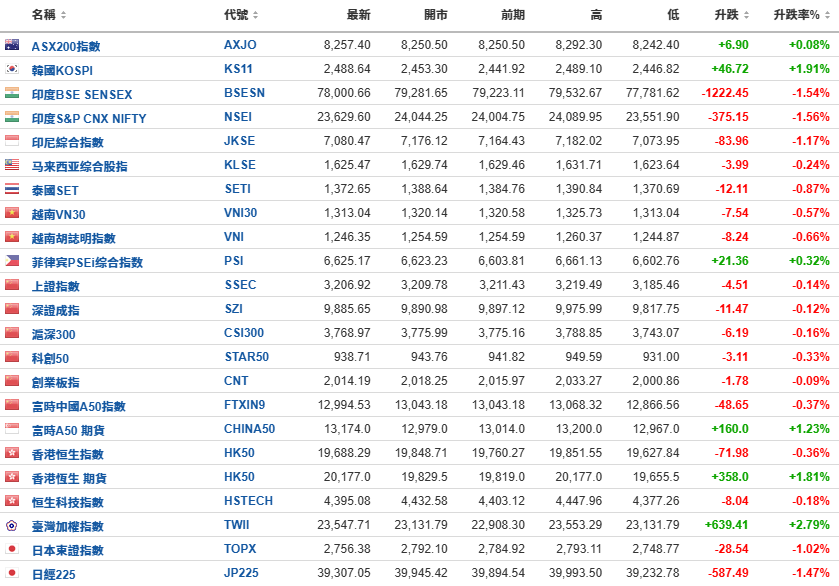 亚太股市多数下跌。