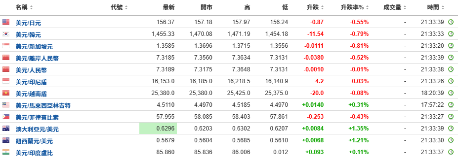 亚洲货币多数上升。
