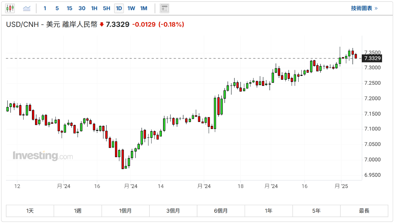 中国央行明确释放稳汇率信号,离岸人民币兑美元日内小幅走高。