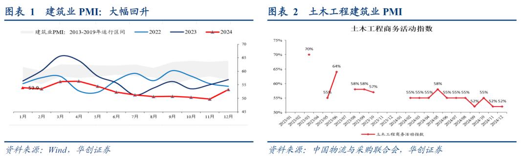 。据中采解读,“同时,需求侧也出现积极变化。分行业看,房屋建筑业新订单指数升至50%以上,土木工程建筑业新订单指数升至53%以上。”去年12月随着增发国债发行完毕,也出现了较为明显的订单的回升。