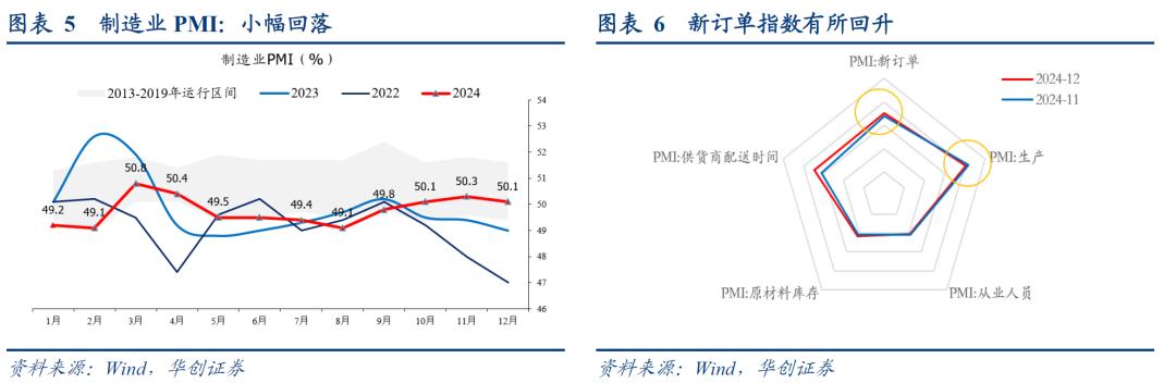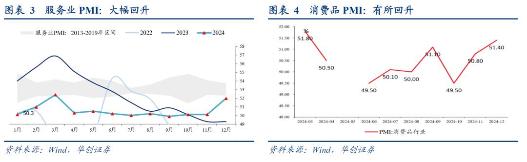 零售业的回升往往伴随着消费品制造业PMI的回升,12月,消费品制造业PMI回升至51.4%,此前9月,回升至51.1%。据中采解读,“从结构来看,消费品市场需求增长尤为亮眼,‘两新’政策为消费市场注入了较强动力,。”