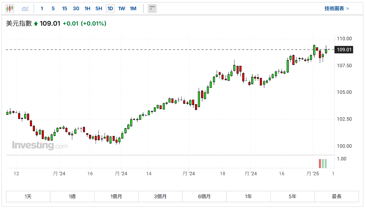 周四(9日),美元指数重返109上方,亚洲股市承压,日经225指数跌0.75%,连续第二日下跌,台湾加权指数跟跌。