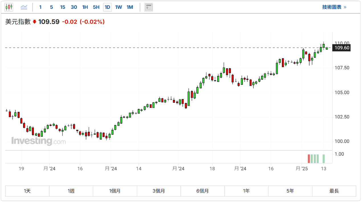 周二(14日),美元指数一度突破110关口,日本股市继续承压,日经225指数跳空下挫1.32%,跌破3.9万点,创年内新低。