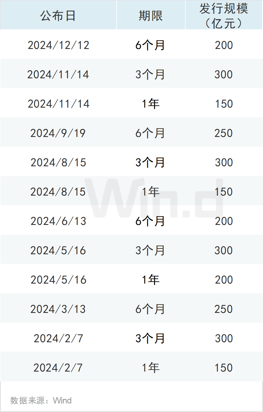 Wind统计显示,2024年央行在香港发行了2750亿元的离岸央票。其中,3个月、6个月和1年期合计分别发行规模为1200亿元、900亿元和650亿元。从发行次数上看,三个期限均发行了四次。