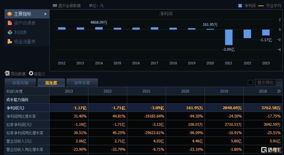 净利润连续大额亏损