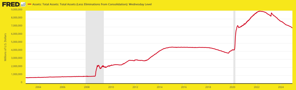这与2022年以来美联储资产负债表持续收缩的趋势相符: