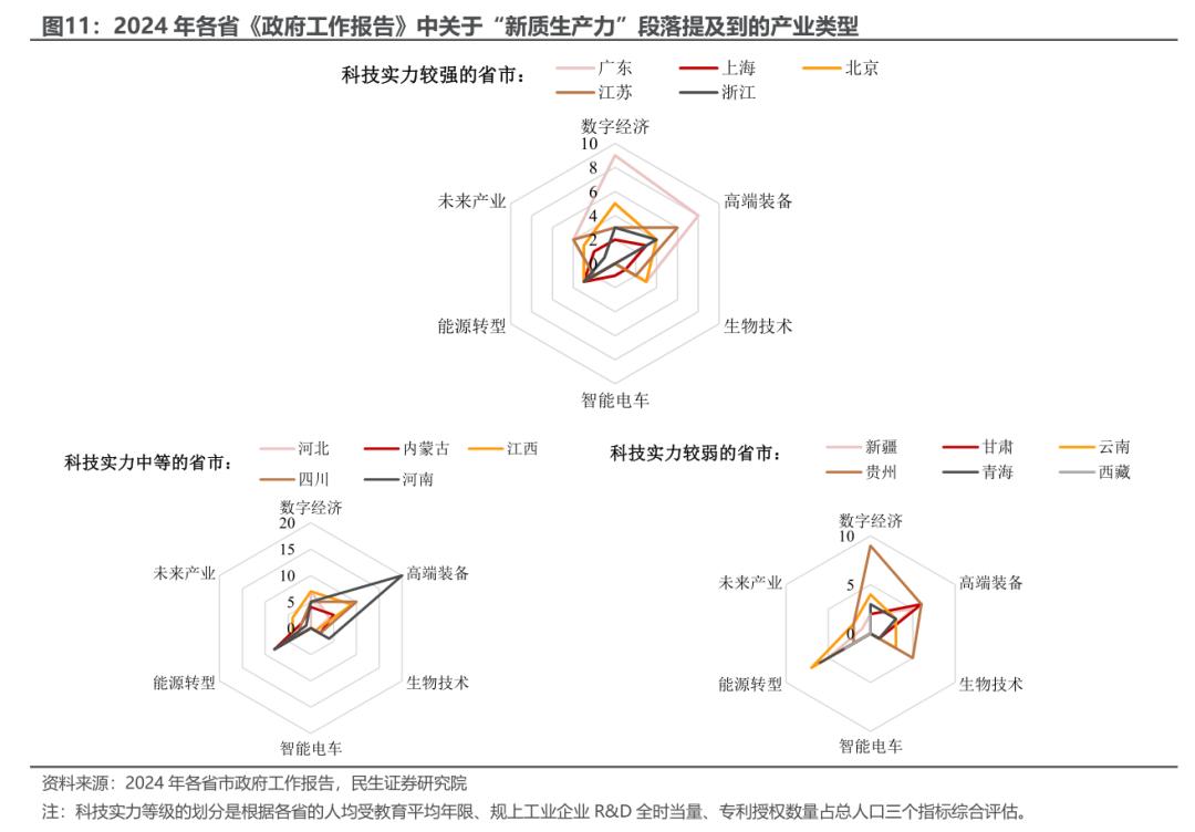 在数字经济和未来产业等门槛更高的领域上“先行探路”;更多部署在比较传统的科技板块;的“新质”极具特色化,比如贵州的数字经济,新疆、西藏、甘肃等地的能源转型。本周地方两会将密集召开,可以重点关注后续各地政府工作报告中对于产业政策的部署。