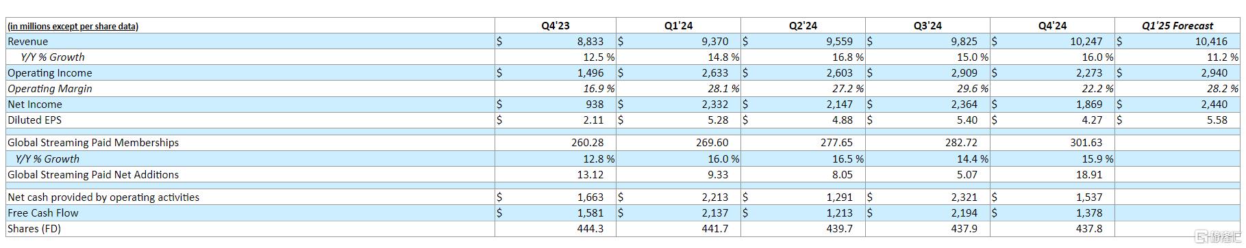 纵观2024年,奈飞整体营收增长强劲,净利润大幅提升。