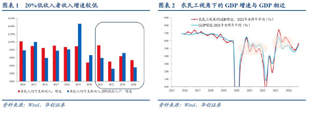 低收入户(五等份中收入最低的一等分)的收入增速。2024年,据统计局数据,20%低收入户人均可支配收入9542元,同比增长3.5%。全年全国居民人均可支配收入41314元,比上年名义增长5.3%。