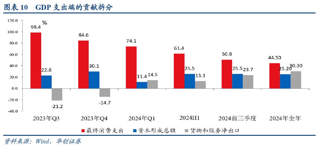 年全年增长的贡献拆分来看,最终消费支出贡献率为44.5%