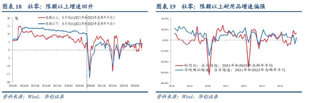 限额以上与限额以下来看,限额以上增速回升。12