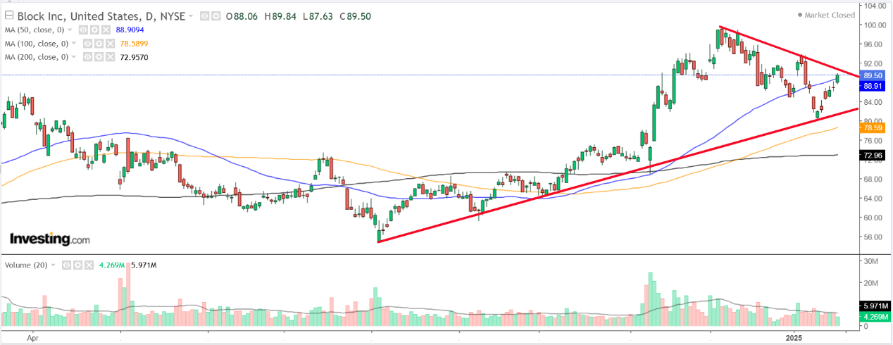 Block股价走势图,来源:英为财情Investing.com