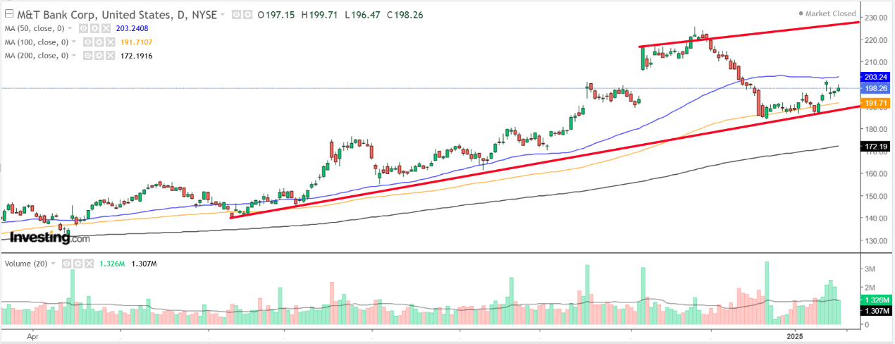 2025年,一系列因素可能利好M&T银行。利率高企预计将扩大净息差,从而提高银行的盈利能力。此外,该行正在进行的数字化转型以及削减成本,这些举措有望提升运营效率,进一步改善其业绩。