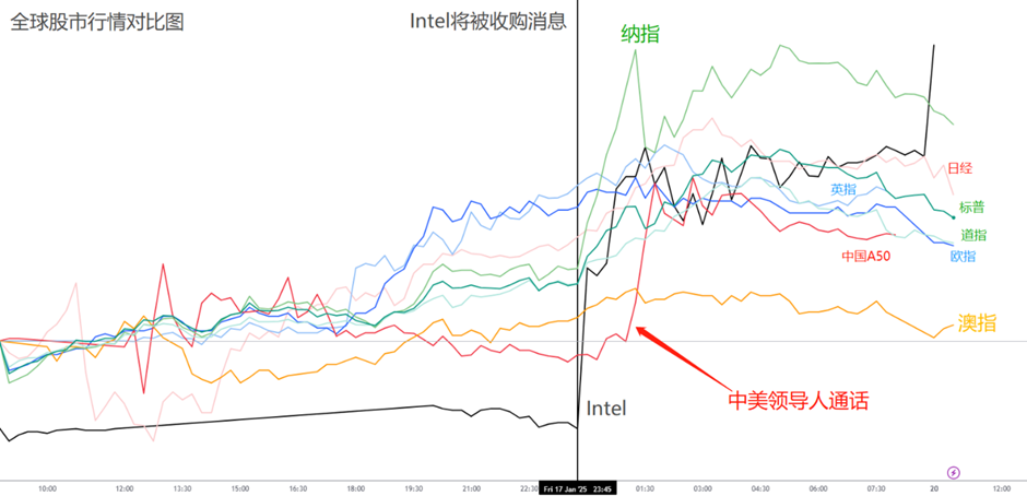 特朗普上任前,交易者纷纷押注政策力度,金融市场无消息面震荡。英特尔或被收购的消息,刺激到近期低迷的科技板块,美股全面转涨。大宗商品则相反,集体下跌。没想到,中国股市却悄咪咪地涨了一波。