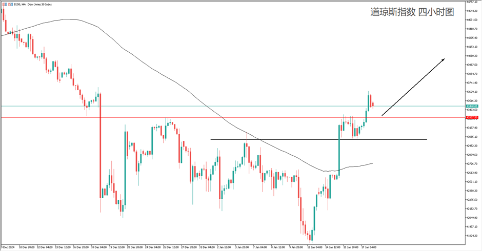 最后是美股,尤其是道琼斯指数。虽然英特尔暴涨触发纳指反弹,但可能出现一天涨一天跌的行情。道指则相反,主要受到近期良好经济数据、银行财报以及特朗普减税与放宽金融监管的影响。交易策略应该以顺势跟涨为主。
