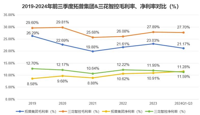 从成本占比来看,据 2023 年财报显示,拓普集团汽配业务的直接原材料成本占比高达 77.6%;三花智控营业成本中也有73.6%来自原材料,本质上两者赚的都是辛苦钱,都需要依靠高效的成本管控能力实现可持续性的盈利增长。