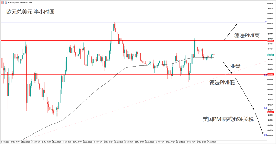 交易策略:(趋势跟随)亚盘突破1.041跟空;PMI数据行情跟随突破方向