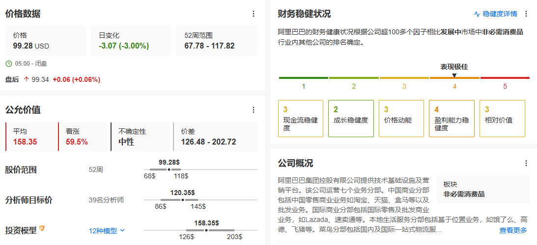 三、阿里巴巴99.28美元