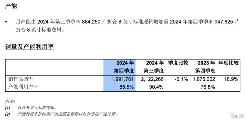 第四季度的产能利用率从三季度的90.4%降为85.5%,共销售晶圆199.18万片8英寸标准逻辑,环比减少约6.1%。