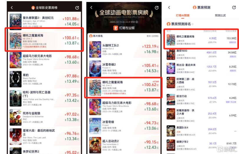 在全球动画电影票房榜上,《哪吒2》已冲进前三,距离《头脑特工队2》、《冰雪奇缘2》前两位的票房已近在咫尺。