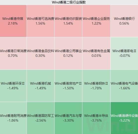 行业方面,2 月 13 日,港股传媒、可选消费、纺织服装、企业服务等板块涨幅居前;硬件设备、半导体、汽车与零配件等板块领跌,跌幅均超 3%。